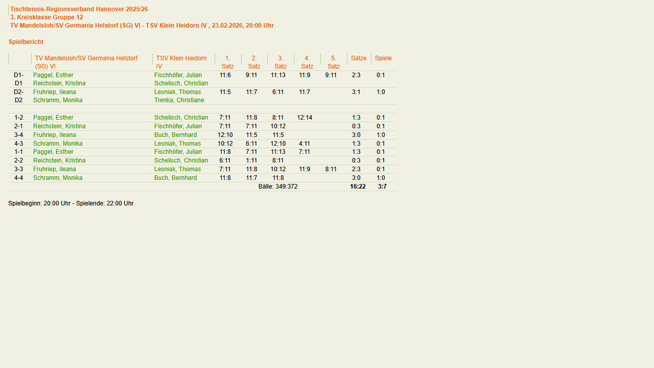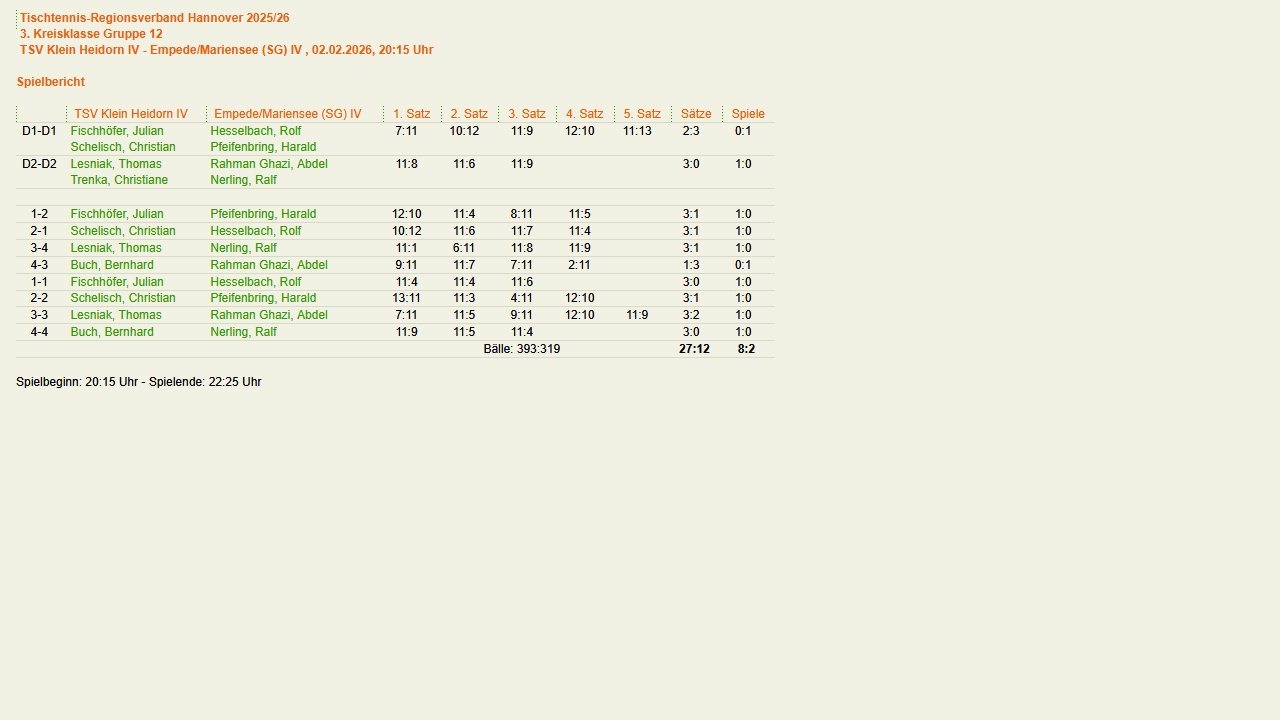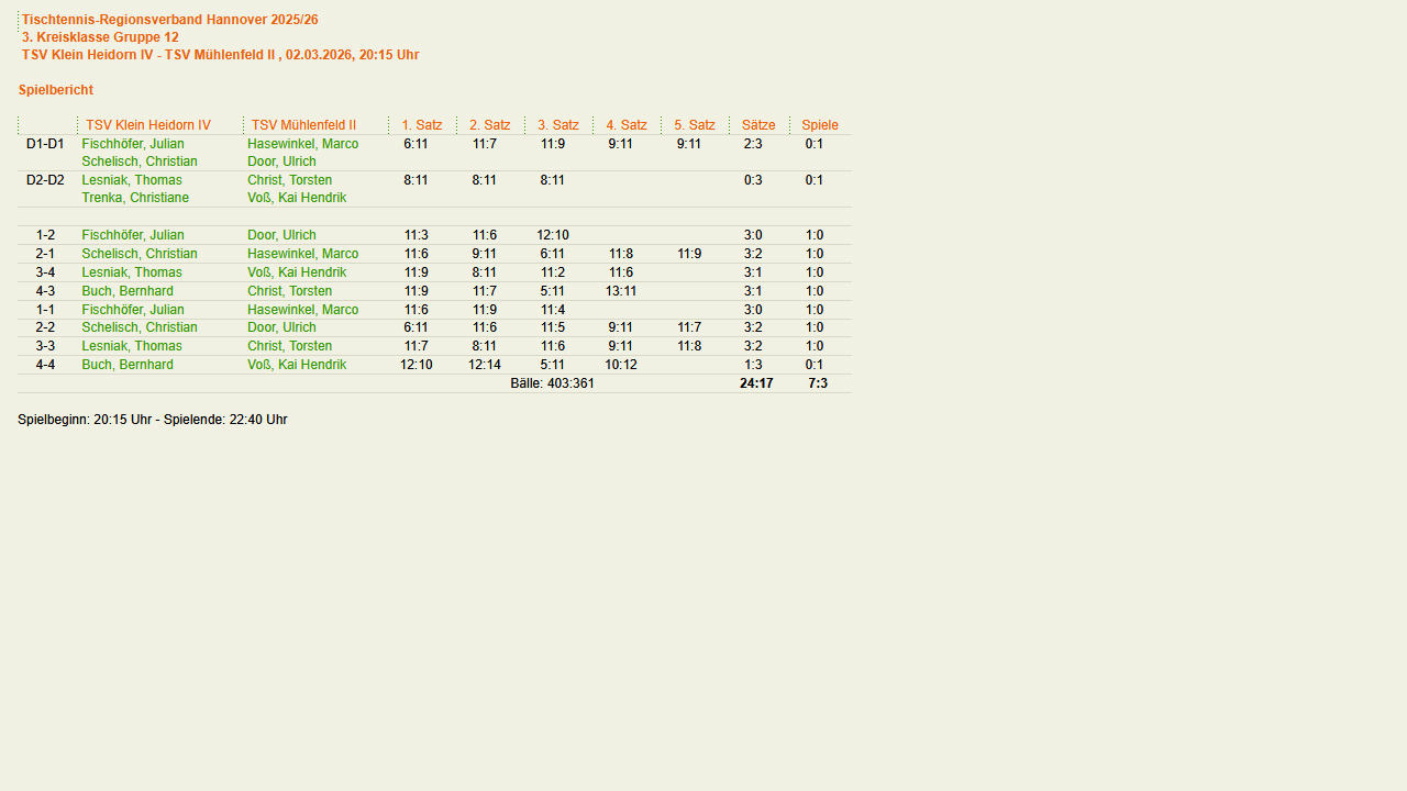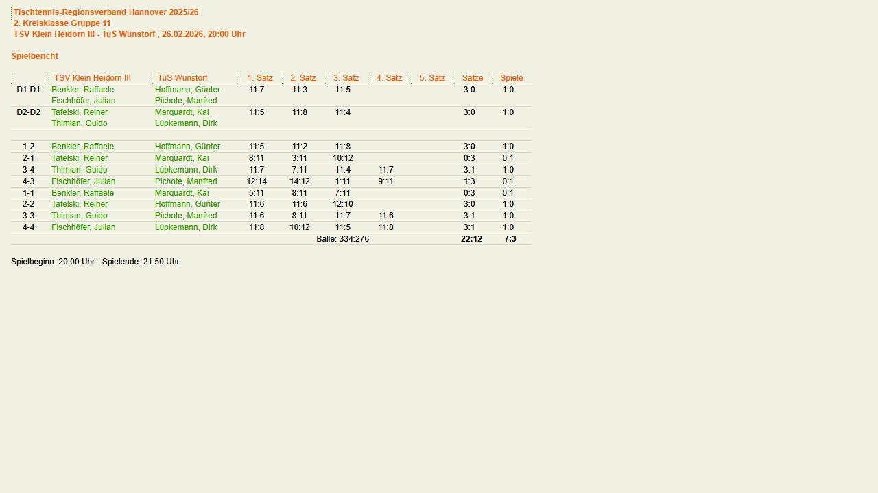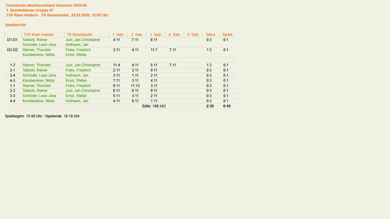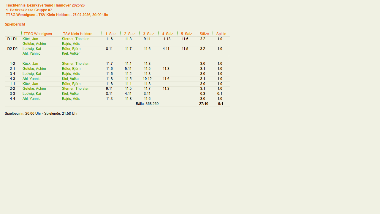 Selbstverständlich wieder mit Klein Heidorner Beteiligung. Turnierübersicht (click-TT) |